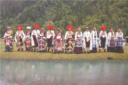人生的舞步難免有陡峭和漫長(zhǎng),難免有情愛(ài)和遺恨,每一步跳動(dòng),都把回憶和驚醒呼喚,每一句唱詞都足以溫暖人心。天地廣闊,還有什么比這舒心達(dá)意的鍋莊舞步和傾吐心聲的對(duì)唱來(lái)得動(dòng)人?木雅人站立成行,紅纓帽的熾熱,金寶盤(pán)銀呷烏的妝扮,是歷史的格言在身上鐫刻的印跡,是民族的希望和自豪的展現(xiàn),也是木雅人深埋地下的根!