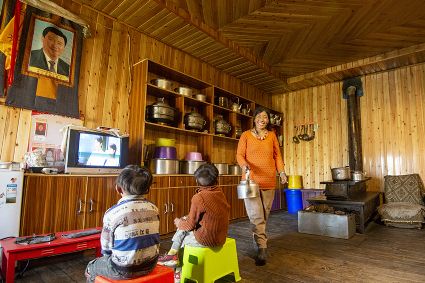 觀看圖片展的贈(zèng)科小學(xué)退休老校長阿伙布老人一邊指著贈(zèng)科鄉(xiāng)安卡村的全貌圖,一邊自豪地給身邊觀展的人群說:“這是我的家鄉(xiāng),在六七十年代的時(shí)候,村里房子是沒有樓層的土木房?,F(xiàn)在,村里的人居環(huán)境有了很大改善,房子也修得很漂亮。看到家鄉(xiāng)的變化,我非常高興?!?/p>