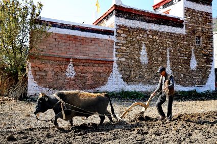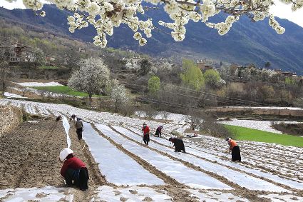 “春耕、夏耘、秋收、冬藏”是大地的“四季歌”。幾場春雨過后,大渡河流域氣溫逐漸回升。時下,穿行于我州 大渡河流域廣袤的山川田野間,到處是一派搶農(nóng)時的忙碌場景。沉寂的田野,開始熱鬧起來。農(nóng)戶們?yōu)榱艘荒甑暮檬粘?,背上背簍、帶著鋤頭、趕著耕牛,走進阡陌縱橫的田野,鉚足“牛”勁兒,翻土、修剪、澆水、除草,田野間好不熱鬧。一幅忙春耕、勤備耕的“春耕圖”已在甘孜大地徐徐展開。