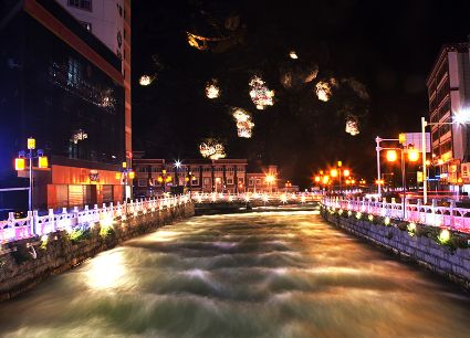月光如水,飛珠濺玉的銀浪渲染滿天星辰,分不清人間天堂抑或是太虛幻境。閃爍的流光,如玉帶纏繞火樹銀花,明珠的光彩盡現(xiàn)川西高原情歌城。