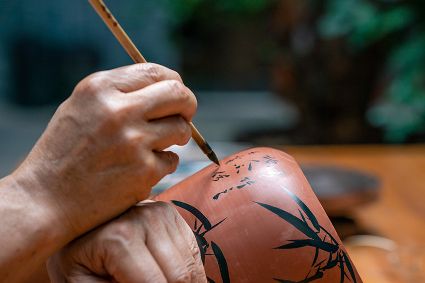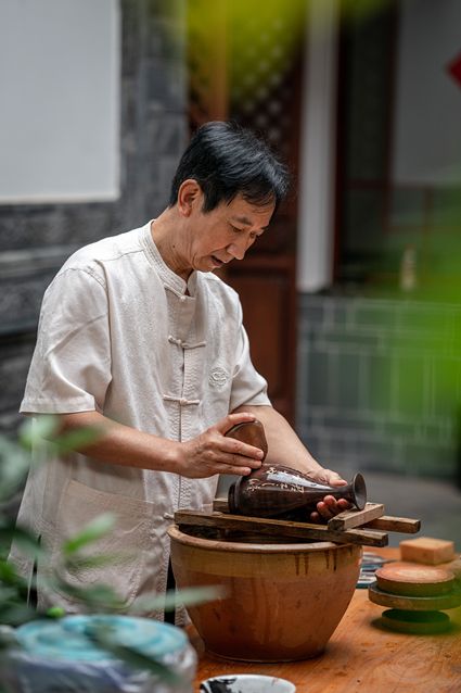 生活在云南省紅河哈尼族彝族自治州建水縣碗窯村的徐榮洪是當(dāng)?shù)匦旒腋G的第五代制陶藝人,也是非遺建水紫陶燒制技藝的傳承人。 泥料制備、拉坯造型、濕坯裝飾、雕刻填泥、高溫?zé)?、無釉磨光……要想做出精良的紫陶工藝品,每個流程都需要潛心鉆研。“制作技藝環(huán)環(huán)相扣,某一道工序出現(xiàn)紕漏,燒出來就是瑕疵品。” 徐榮洪拿起刻刀,對陶坯表面開始進(jìn)行雕刻。 今年57歲的徐榮洪小時候就跟著長輩上山挖陶泥,多年來堅(jiān)持鉆研建水紫陶的制作技藝。 徐榮洪介紹說,作為紫陶藝人,以陶為紙,根據(jù)器型將不同的文化與藝術(shù)形式注入其中,使其具有無限活力。非遺文化閃爍著人類智慧的光芒,也承載著人們心底的情思鄉(xiāng)愁。