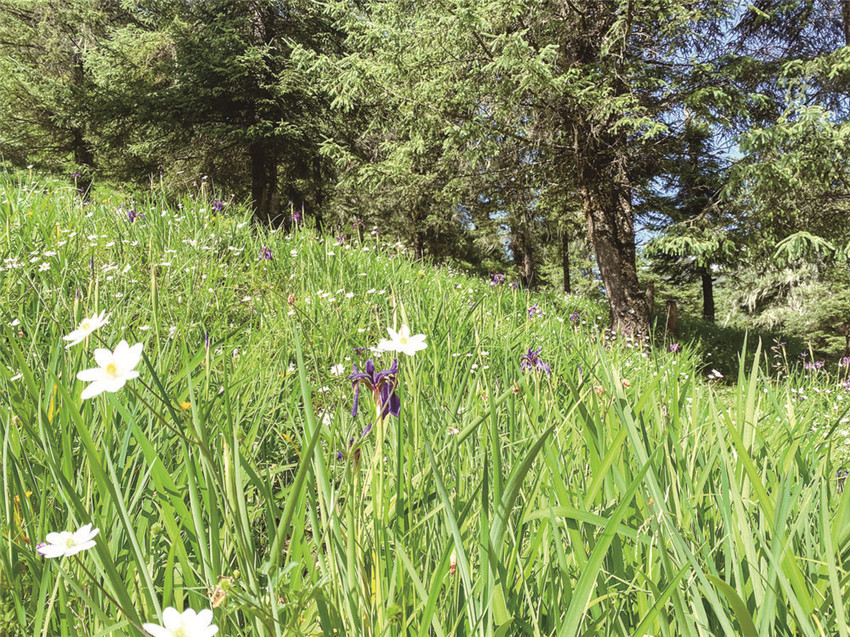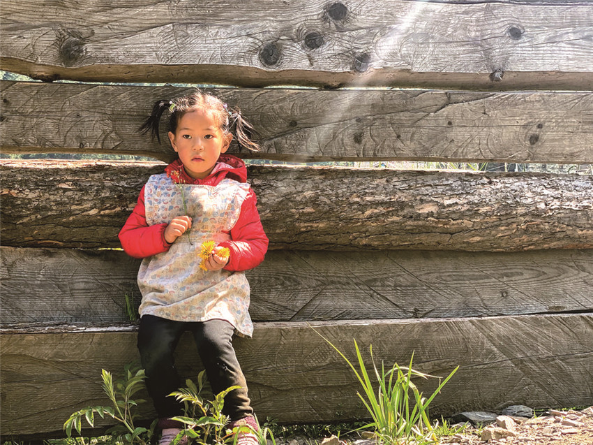 女人們相約去后山林中撿野生菌。一位穿氆氌袍子的老牧人領(lǐng)著小孫女,還有一只勇猛地藏獒,在石屋后方的草坪上等太陽。微風(fēng)輕拂著他們腳邊盛開的鳶尾花,細(xì)聽,那鈴鐺般的花朵搖響嘶嘶桑桑的音樂。小女孩在花叢中那條伸向牧場的小路上撿拾白色的小石子,裝入衣包里,鼓脹后就取出一枚枚投向花叢中的黑蝴蝶,令它的世界撲朔迷離。老牧人瞇縫著眼睛,翻轉(zhuǎn)粗糙的手心手背,仿佛要使它也開出鳶尾花朵來。我朝他們走去,小女孩朝我跑來,撲進(jìn)我的懷中喊我阿尺。我撫摸她頭頂上的卷發(fā),像撫摸著一只乖覺的小鹿。
