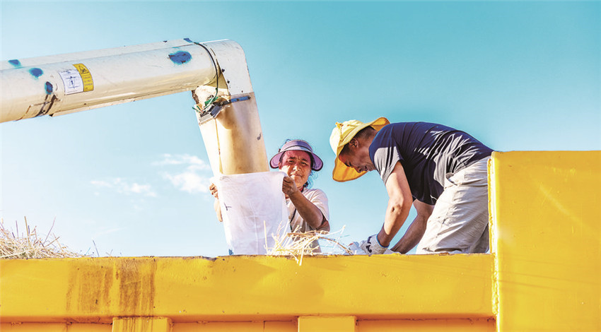 甘孜縣是我州的農(nóng)業(yè)大縣,也是全國青稞商品糧基地之一,素有“康北糧倉”的美譽。日前,在甘孜縣仁果鄉(xiāng)青稞收割現(xiàn)場,一望無垠的田地里麥浪滾滾、麥香四溢,一臺臺聯(lián)合收割機在金色的青稞地里來回馳騁,時不時停下來“吐出”金燦燦的青稞,農(nóng)戶們的臉上露出豐收的喜悅笑容。