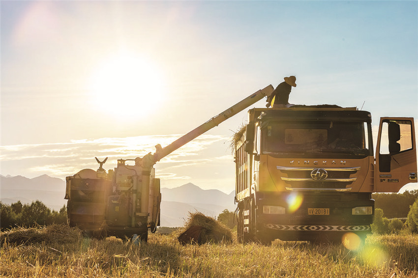 一望無邊的農(nóng)田里,谷粒飽滿,一陣風(fēng)吹來,金黃色的青稞隨風(fēng)起舞。收割機正來回穿梭,不一會兒就裝了滿滿一車……入秋后,甘孜縣迎來秋收時節(jié),到處呈現(xiàn)出一派豐收的景象。