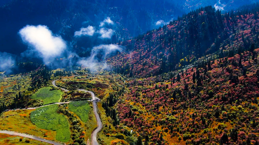 在亞拉雪山景區(qū)白云、雪山、溪流、湖泊、彩林和蜿蜒的林間小道,籌備著接受時(shí)光的檢閱;在國(guó)道G350沿線,高大的行道樹矗立兩旁,陽(yáng)光透過(guò)黃葉斑駁散落,這是白楊對(duì)大地一年一度的禮贊;在鮮水河大峽谷國(guó)家森林公園,山河披上金色華服,紅楓將最后的力量綻放成花朵贊美鮮水的波瀾、時(shí)代的壯闊;在玉科千畝連片彩林,金色畫卷鋪展大地,肆意蔓延;在甲依拉措,循著落葉松金黃的誘惑它將絕美寶石珍藏于雪山下,等待你驚喜的表情;在道塢濕地公園,黃葉倒影在綠水中白鷺、野鴨,愜意人群、互為生趣,自然贈(zèng)予的歡愉最是秋季。