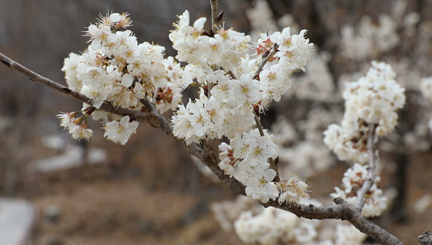 來到浪漫櫻桃谷,遠(yuǎn)遠(yuǎn)望去,那層層疊疊的櫻桃花團(tuán)團(tuán)若絮,裊裊如煙,如一條條白色的玉帶輕繞在山腰傳遞著濃濃的春意,一簇簇雪白的櫻桃花含苞競(jìng)相綴滿枝頭,爛漫若云。