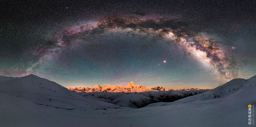 大雪山北部,海拔5884米的雅拉雪山與貢嘎遙相呼應(yīng),日落時(shí)分聳立在原野之上的雅拉被霞光籠罩如同大地的王冠;沙魯里山縱貫甘孜西部,它南北長約450公里,寬約200公里是四川最寬最長的山脈,它山勢(shì)平緩,置身其中有時(shí)都感覺不到山的存在,但同時(shí),它高大巍峨,盛產(chǎn)超過6000米的獨(dú)立山峰,沙魯里山脈北段有海拔6168米的雀兒山,它的中段有海拔6174米的格聶山,它的南段有三座6000米級(jí)山峰組成的稻城三座雪山,彼此距離不過5-7千米,三山合圍之中給人強(qiáng)烈的視覺震撼和心靈沖擊。動(dòng)輒直抵云霄的海拔,加上相對(duì)原始的環(huán)境,使得這里空氣潔凈度極高、光污染小,夜幕落下、銀河升起,云端之色變成一片攝人心魄的星光。