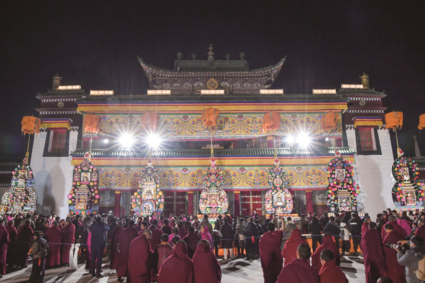 農(nóng)歷正月十五,在甘肅省甘南藏族自治州夏河縣,被譽(yù)為“世界藏學(xué)府”的拉卜楞寺舉行一年一度的酥油花燈展,僧人們制作的精美酥油花作品吸引了眾多僧俗群眾和海內(nèi)外游客前來觀看。