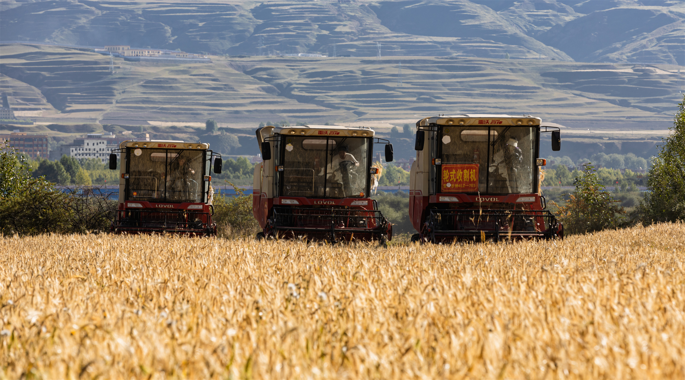 金秋時(shí)節(jié),我州處處洋溢著豐收的喜悅。連日來,我州各縣(市)紛紛進(jìn)入秋收時(shí)段,金色田野上,成熟的青稞、小麥等農(nóng)作物隨風(fēng)搖曳,大型聯(lián)合收割機(jī)來回穿梭,轟鳴聲奏響秋收樂章,農(nóng)民們忙碌的身影與現(xiàn)代化的農(nóng)業(yè)機(jī)械共同繪就一幅生機(jī)勃勃的秋收畫卷。