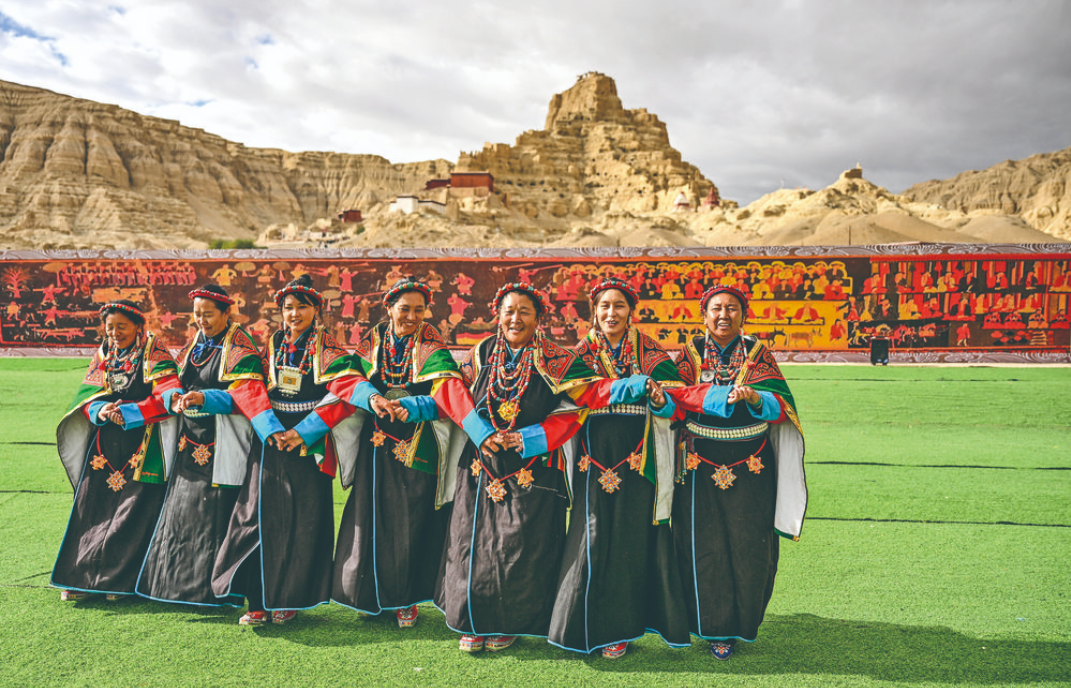“宣舞”起源于札達縣,是西藏阿里民間傳統(tǒng)舞蹈?!靶琛比诤喜貞颉⑽璧?、說唱等主要的藏民族民間藝術(shù),內(nèi)容涵蓋藏民族宗教、禮儀、風(fēng)俗、節(jié)慶等各方面的內(nèi)容。2008年,“宣舞”入選第二批國家級非物質(zhì)文化遺產(chǎn)名錄。