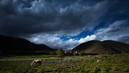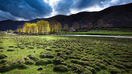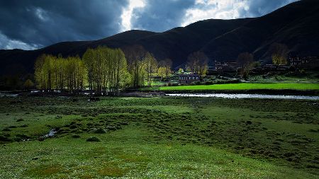 湛藍(lán)的天空下,雄鷹在盤(pán)旋,牛羊在安詳?shù)芈匠圆?,靜靜的小河在山邊蜿蜒流淌,充滿綠意的白楊樹(shù)在風(fēng)中搖曳,藏式民居不時(shí)升起縷縷炊煙,寂靜、空曠的原野深處偶爾會(huì)傳來(lái)幾聲狗叫高原的陽(yáng)光又賦予這幅風(fēng)景畫(huà)凝重的色彩這樣的畫(huà)面叫人心醉,讓人留戀忘返從折多山腳下至新都橋鎮(zhèn),再至塔公草原,處處都是入畫(huà)的美景,不愧稱為“攝影家的天堂”。