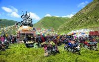 格薩爾王在藏族的傳說里是神子推巴噶瓦的化身,一生戎馬,揚(yáng)善抑惡,宏揚(yáng)佛法,傳播文化,成為藏族人民引以為自豪的曠世英雄。這是筆者在格薩爾誕生地——德格阿須草原現(xiàn)場(chǎng)拍攝的一組照片,它呈現(xiàn)了康巴藏區(qū)送文化下鄉(xiāng),牧民如過節(jié)一樣歡樂的盛況。該組圖片為演出現(xiàn)場(chǎng)。
