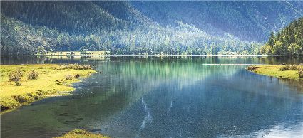 一天之中,數(shù)清晨和傍晚的海子最美,晨光中,湖水猶如鏡面般倒映著周圍的景物,天色漸漸亮了,周圍的景物也在 “鏡子”中漸漸清晰起來(lái),特別是那些雪山下的海子,當(dāng)太陽(yáng)給雪山鍍上一層玫瑰金,倒影更美。傍晚,落日的余暉灑在海子和它周圍的景物上,又是另一種美,天上再有幾縷晚霞,更絕。四季里,就要看秋天的海子,因?yàn)檫@時(shí)海子周圍的景色是最美的,紅葉、黃葉、綠葉相間,便襯托得海子更美。