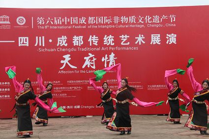 到處都是炫麗的色彩,到處都有神秘的傳承,6月10日,第六屆成都國(guó)際非遺節(jié)在成都拉開帷幕。當(dāng)天下午2時(shí),一場(chǎng)我州特有的文化大戲在成都非遺博覽園西城事廣場(chǎng)上演。我州石渠真達(dá)鍋莊隊(duì)在此激情演繹,他們揮舞長(zhǎng)袖,翩翩起舞,讓前來(lái)游覽的觀眾贊不絕口。