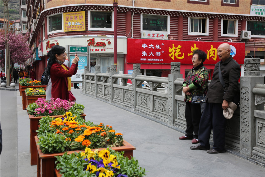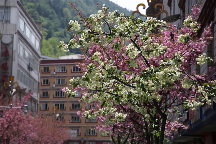 當(dāng)春天遇見最美的櫻花時(shí),驚艷了整個(gè)康定。櫻花與身邊人都將成為春日里的浪漫風(fēng)景。櫻花之美,美在氣勢(shì),櫻花紛飛,夢(mèng)幻唯美。每年4月中旬,康定城北門的櫻花綻放后,人們像是約好了一樣聚集到這里,共赴這一場(chǎng)甜美盛宴。這一路繁花似錦,人們穿過枝椏花正盛的櫻花林,穿過粉色海洋,徑直奔向一個(gè)浪漫的童話,一路櫻花飄散,一路粉光燦爛。櫻花絢麗繽紛、陸續(xù)綻放,若恰逢一陣春風(fēng)經(jīng)過,櫻花瓣隨風(fēng)舞動(dòng),猶如紛落的雪花,空氣中浮動(dòng)著櫻花特有的淡淡香氣,令人不禁懷疑自己置身夢(mèng)境?!翱刀ǖ拇禾靵淼靡硪恍?,綻放的櫻花,滿街的花草,折多河畔楊柳依依,康定的春天無比驚艷,醉了游人?!敝芟壬贿吪恼眨贿吀袊@,他在康定生活了40多年,20年前的康定,可以說找不到像樣的花草樹木,進(jìn)入新時(shí)代,康定城市變美了,城市綠化走在了前面,城市的美譽(yù)度舒適度不斷提升??刀ㄖ海荷珴M園,姹紫嫣紅,風(fēng)光旖旎。