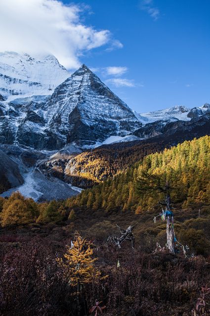 十月的稻城亞丁,秋高氣爽,空氣里漸漸彌漫著涼意,雪山在藍(lán)天白云的襯托下更顯圣潔,碧綠的水色在天空的映射下一來,發(fā)著幽幽的光芒,碧波蕩漾、粼粼波光中透出無限清麗,澄澈的牛奶海、彩林環(huán)繞下的珍珠海、奇幻色彩的五色海,湖水清瑩碧藍(lán)、玲瓏秀雅而惹人憐愛,到了秋意漸濃的時(shí)刻,翠藍(lán)與金黃相映成趣,倒影著五彩斑斕的世界,令人目眩神迷。在這美好的金秋時(shí)節(jié),來到稻城,你會(huì)甘愿將胸膛與大地貼近,把靈魂與天空相融。你可以輕易的把自己的心情釋放在這片草原、湖泊、森林、雪山之中,盡情陶醉。