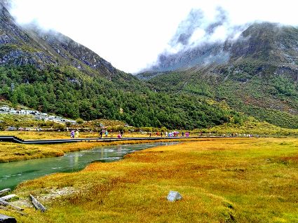 燦爛的陽光伴隨幾場(chǎng)秋雨秋霜過后,亞丁的秋天便更加絢麗多彩,漸黃的草地和青楊林開始爭(zhēng)奇斗艷,稻城的美變得更加富有層次,幾乎是一天一個(gè)變化,一天一個(gè)景色。山與水、人與情,一步一勝境。大片大片的高原草甸現(xiàn)在已經(jīng)逐漸變?yōu)辄S綠色,環(huán)抱高原海子的水草也由養(yǎng)眼的綠色向迷人的金色過渡。藍(lán)天白云、金色草甸、紅楓映白樺、秋水繞山間,幽靜的小徑,融合了感性的色彩和理性的沉靜,既有成熟的風(fēng)韻,又有灑脫的禪境。木質(zhì)棧道以“曲徑通幽”的姿態(tài)環(huán)景分布,所經(jīng)之地為負(fù)氧離子含量相對(duì)較高的森林區(qū)域,漫步林中,令人心曠神怡。無論是傳統(tǒng)的團(tuán)隊(duì)游,還是個(gè)性化的自助游、自駕游,在這里都能找到屬于自己的那份愉悅。
