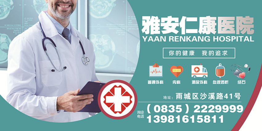 雅安仁康醫(yī)院是雅安市衛(wèi)計(jì)委注冊的二級(jí)乙等民營非營利性綜合醫(yī)院,位于雅安市雨城區(qū)沙溪路41號(hào),占地面積4000平方米,建筑面積4800平方米,編制床位120張,實(shí)際開放床位150張,開設(shè)有內(nèi)科、外科、麻醉科、手術(shù)室、中醫(yī)科、婦科、檢驗(yàn)科、超聲心電圖室、放射科等多個(gè)臨床醫(yī)技科室,現(xiàn)有職工120人,其中衛(wèi)生技術(shù)人員96人;醫(yī)院配備有西門子CT、進(jìn)口DR、彩超、全自動(dòng)生化分析儀、動(dòng)態(tài)心電及動(dòng)態(tài)血壓監(jiān)測儀、腦彩多、骨密度檢測儀、血液透析機(jī)、腹腔鏡、纖維膽道鏡、經(jīng)皮腎鏡、膀胱鏡、硬性輸尿管鏡、纖維輸尿管鏡、前列腺電切鏡、鈥激光碎石治療儀、綠激光氣化治療儀、體外碎石機(jī)、氣壓彈道碎石機(jī)、紅外光譜結(jié)石分析儀等多種先進(jìn)醫(yī)療設(shè)備。