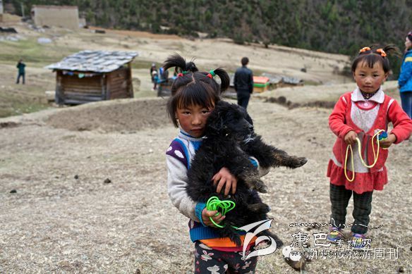 看到我們走過來,一個正在玩耍的藏族小女孩抱起了自家的小狗。(攝影 周崗峰)