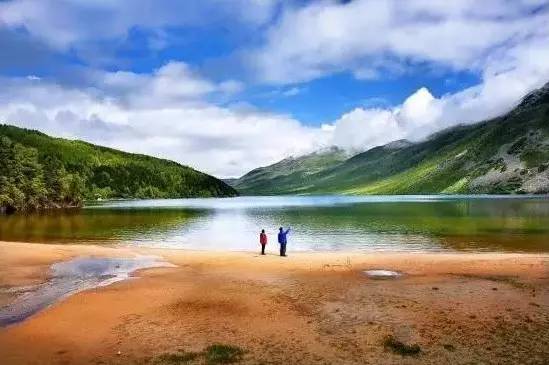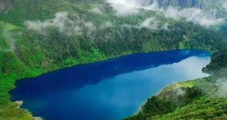被原始森林和草甸環(huán)抱的五須海,當?shù)厝擞鳛椤跋膳釆y的明鏡”,湖水碧綠透亮,將周圍的山水和天空全映照在湖面,幽靜的像一幅畫。從夏到秋周圍百花盛開,古樹盤根錯節(jié)、藤枝攀沿纏繞,杜鵑樹伸向湖面,仿佛進入原始古樸的仙境。