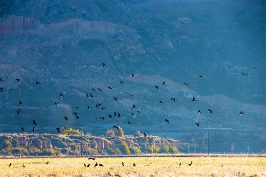 自2013年在鮮水河濕地公園固依壩子發(fā)現(xiàn)了大批黑鸛后,每年10月都有大批的黑鸛在鮮水河濕地公園內(nèi)遷徙和停歇,這在全國尚不多見,足以證明濕地公園生態(tài)環(huán)境的平衡和和諧,同時也印證了鮮水河濕地公園已經(jīng)成為黑鸛種群的重要棲息地,具有重要的保護(hù)意義。
