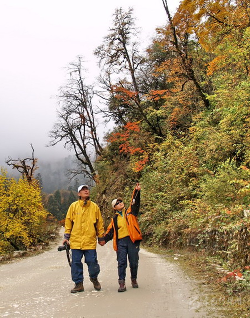 在秋日的呢喃中,海螺溝密林中的楓樹(shù)、連香樹(shù)、槭樹(shù)、樺樹(shù)等百余種植物搖曳身姿,各顯其態(tài),放眼望去,紅的、黃的、紫的、橙的、綠的,各種色彩錯(cuò)雜其間,美麗至極。其間最顯風(fēng)姿的當(dāng)然要屬紅葉,每當(dāng)寒霜初降,“楓”情萬(wàn)種的海螺溝便成為眾多“紅葉迷”觀賞紅葉、探奇攬勝的絕佳去處。在海螺溝地區(qū)觀賞紅葉的最佳時(shí)間是9月底到11月底,最佳地點(diǎn)是海螺溝景區(qū)一號(hào)營(yíng)地(9月底-10月中旬)、二號(hào)營(yíng)地(10月中旬-10月下旬)、草海子(10月中下旬-11月初),燕子溝景區(qū)(10月中旬—11月中旬)和雅家?。?/span>10月下旬—11月下旬)。長(zhǎng)達(dá)兩個(gè)多月的紅葉觀賞期,是夢(mèng)幻的天地,層林盡染、絢麗多姿的秋天,是海螺溝呈現(xiàn)給世人最好的禮物。