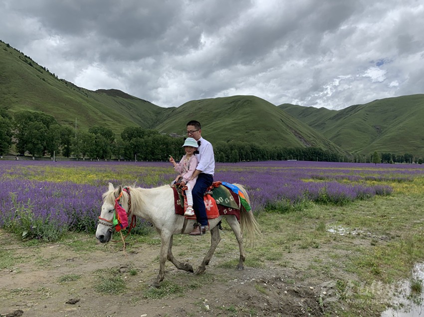 是時(shí),微風(fēng)乍起,黛山環(huán)抱下的花海漾蕩著瀲滟的紫光,裹挾著無(wú)邊的浪漫和淡淡的芳香,向棧道上的游人涌來(lái),彌漫到腳邊、四溢到身旁——踏訪這個(gè)藏在川西高原的“普羅旺斯”詩(shī)境實(shí)地,一幅美不勝收的“夏日高原送爽圖”令人心迷神醉。