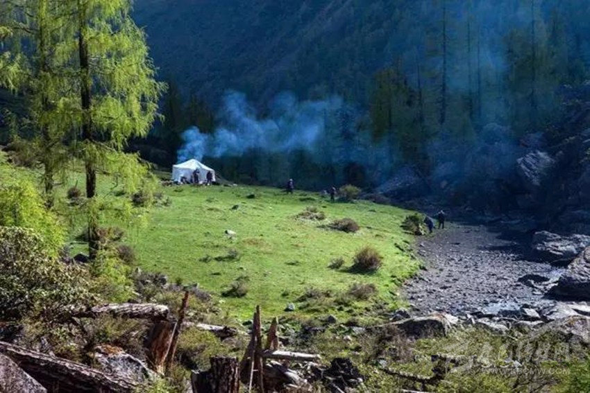 “甲依拉措”位于道孚玉科鄉(xiāng)七美村。駕車從道孚出發(fā)走一百多公里鄉(xiāng)村土路,到村上后,騎馬一個(gè)半小時(shí)到“甲依拉措”溝口宿營地。