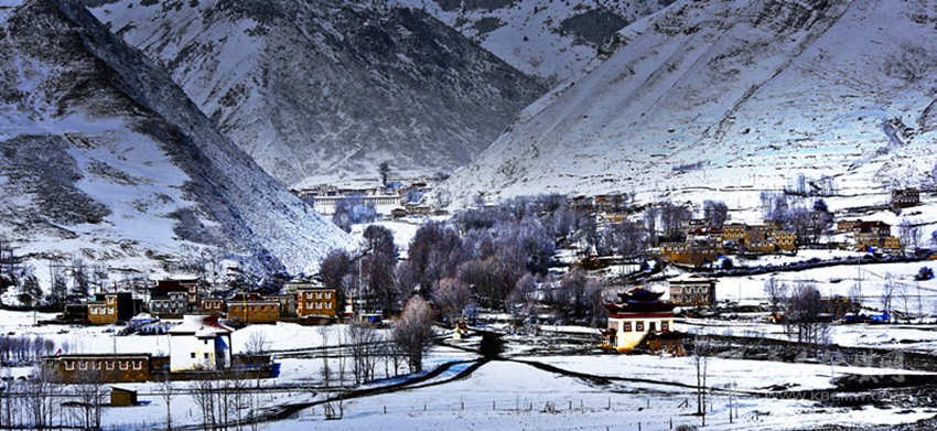 這個(gè)季節(jié)進(jìn)入德格,在途中放眼望去,窗外一片白雪茫茫,雪花覆蓋著道路,覆蓋著印經(jīng)院、新路海,覆蓋著德格的樹(shù)木與秋草。