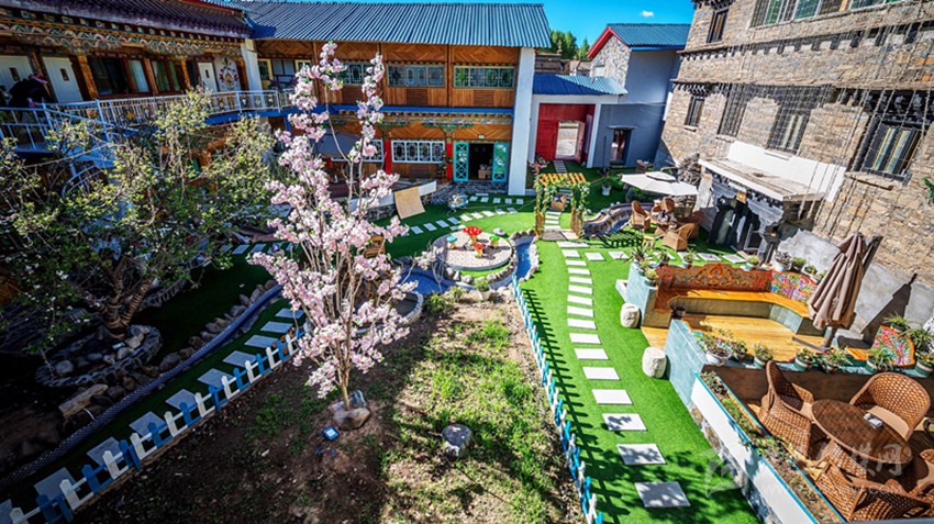 曾經(jīng)的倉(cāng)庫(kù)變成了咖啡廳,關(guān)牛的地方變成了餐廳,土司房變成了溫泉套間,四合院變成了小橋流水,雖然有些改變,但留給客人的依舊是一個(gè)傳統(tǒng)藏式四合院?!拔ㄒ桓淖兊闹皇嵌嗔诵┬氯诵率聛韥硗?,在這里從你的全世界路過……”石雅琴借用張嘉佳的《從你的全世界路過》的話語(yǔ),道出了她對(duì)“親愛的宅宅”的“定性”。