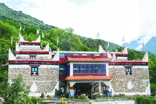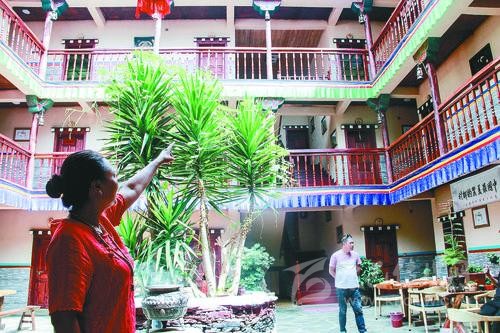 記者在“安卡兒民族莊園”看到,每天游客絡(luò)繹不絕,游客們不肯錯(cuò)過(guò)的是這里的鄉(xiāng)愁。眼前的“安卡兒民族莊園”是一座藏式三層小樓,以嘉絨民居為主格調(diào)。從外觀看,這棟三層小樓與村里其他農(nóng)家小院沒有多少差異,但仔細(xì)端詳,其所有窗戶大小、高低不一,透出與眾不同的設(shè)計(jì)風(fēng)格。走進(jìn)院內(nèi),這座藏式小樓的走廊外側(cè)裝著木欄桿,欄桿下面掛著藍(lán)綠相間的布條,以及大院中央郁郁蒼蒼的盆景,讓人美不勝收。