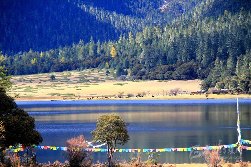 秋季的木格措風(fēng)景區(qū),五彩斑斕的彩林倒映在明麗的湖水中,蒼茫的高山灌叢比夏花還妖艷動人,金燦燦的陽光,深邃的木格措圣湖凸顯著鮮明的自然個性,好像走進了五彩繽紛的光影世界。
