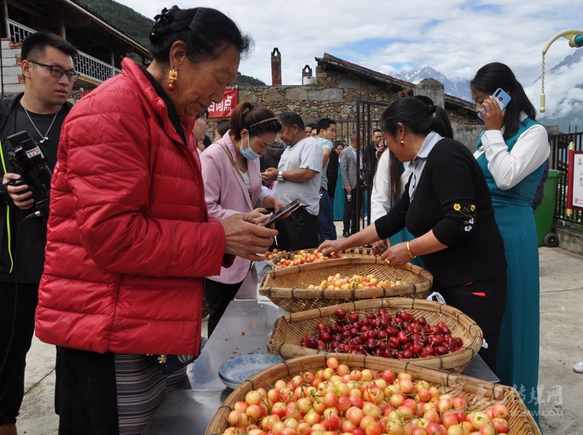 五月的大渡河沿岸鮮花怒放、瓜果飄香,黃橙橙的枇杷,紅彤彤的櫻桃沉甸甸地掛滿枝頭。近日,“鄉(xiāng)村振興·櫻你而美”康定市甜櫻桃采摘品鑒現(xiàn)場(chǎng)會(huì)在該市姑咱鎮(zhèn)莊上村舉行。拉賓斯、布魯克斯、美早、早紅珠、晚紅珠、紅燈、明珠等10多個(gè)品種大櫻桃均已成熟,各路客商紛紛與村合作社對(duì)接訂貨。