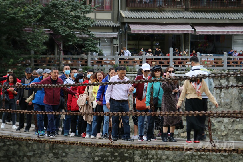游客體驗(yàn)瀘定鐵索橋。本網(wǎng)資料庫(kù)圖