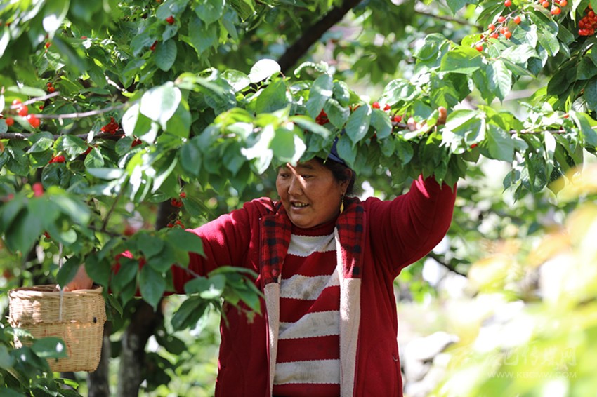眾所周知,瀘定紅櫻桃早已紅遍四川,瀘定紅色文化更是曉喻九州。近年來,瀘定縣以創(chuàng)建“國家全域旅游示范區(qū)”“天府旅游名縣”為抓手,從旅游產(chǎn)品打造、旅游服務(wù)保障、旅游形式多元化等方面發(fā)力,大力推動(dòng)“旅游+”和“+旅游”產(chǎn)業(yè)深度融合發(fā)展,推出紅色經(jīng)典瀘定橋、冰川溫泉海螺溝、最大平臺牛背山、景觀大道G318、最美階梯二郎山、陽光田園大渡河、川藏茶馬古驛道“七張名片”,同時(shí)將以櫻桃產(chǎn)業(yè)為主的果蔬產(chǎn)業(yè)同鄉(xiāng)村休閑旅游業(yè)深度整合。特別是自新冠疫情發(fā)生以來,瀘定縣積極思謀、創(chuàng)新探索“旅游+農(nóng)業(yè)”“網(wǎng)絡(luò)+營銷”“線上+線下”的農(nóng)旅發(fā)展新模式,打通網(wǎng)絡(luò)電商與農(nóng)村物流渠道,努力保證農(nóng)民增產(chǎn)增收。杵坭村種植大戶劉爽興奮地向記者介紹:“今年收成不錯(cuò),銷售路子也不愁!恩桃兒還沒熟,就接到一摞訂單。辦了12屆的采摘節(jié),真是把我們?yōu)o定紅櫻桃的名氣打出去了,期期游客爆滿,大家從全省各地過來吃恩桃兒,都夸我們紅櫻桃好,村民心頭美滋滋!”