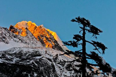 秋色與藍(lán)天相映 明珠與雪山成趣