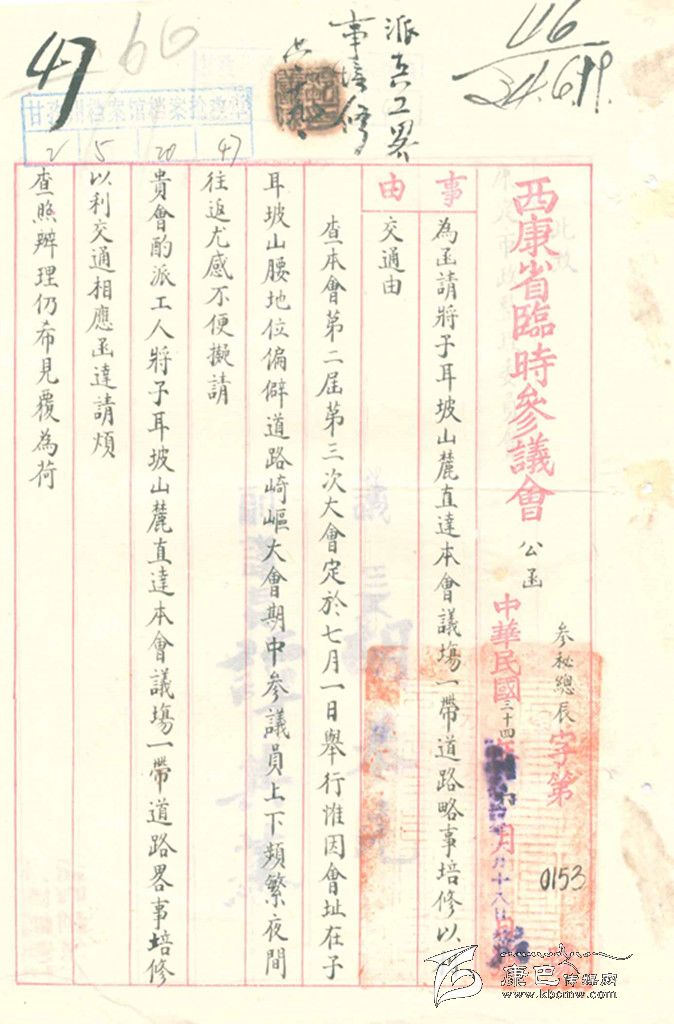 1938年,在子耳坡山腳、如今的州委黨校的地址上,“西康省建省委員會”修建了一幢本意是用來作為接待過往達(dá)官貴人的“籌邊別墅”。這是幢一樓一底的木石結(jié)構(gòu)建筑,當(dāng)年是康定城最氣派的建筑。1939年,西康省臨時(shí)參議會成立,沒有會址,沒有辦公地點(diǎn),新成立的西康省政府便把“籌邊別墅”撥給西康省臨時(shí)參議會作為會址。但是要從城里走到子耳坡山腳,最近便的道路是從中橋附近轉(zhuǎn)到當(dāng)時(shí)的茶店街(現(xiàn)在的建設(shè)路靠東的一段),再沿山往上行。由于是土路,亂石遍地,不好走。于是,當(dāng)時(shí)的參議長胡恭先親自動筆,至函“西康省會市政建設(shè)整理委員會”要求整修這條小道。這里的文字檔案記載的就是這件事。