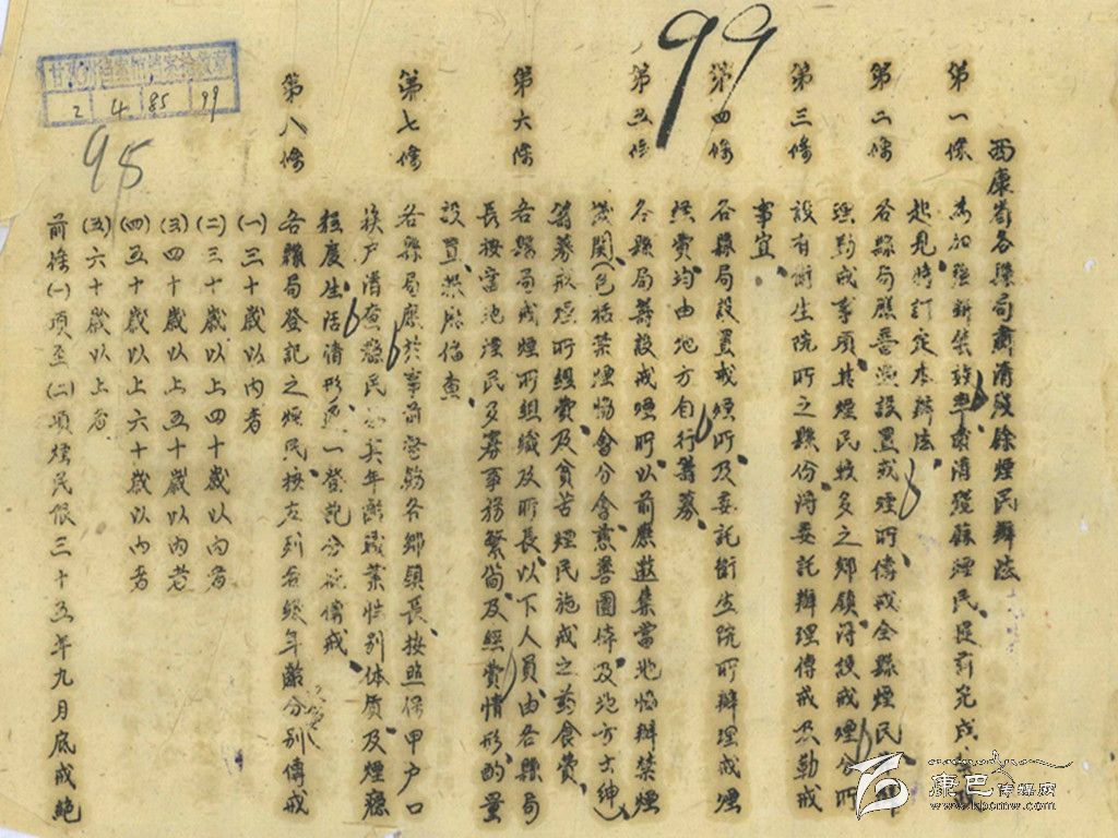 自從鴉片戰(zhàn)爭以后,鴉片煙對中國的危害日益加重。從清朝末年到民國年間,禁煙的呼聲一直不斷。但是,鴉片煙始終沒有得到真正的禁絕。舊社會的康定城,公開和暗里開設(shè)的鴉片煙館遍布大街小巷,煙民眾多,鴉片煙生意一直興旺。解放以前,康定從沒有斷絕過的禁煙運(yùn)動,成為了一出久演不息的鬧劇。當(dāng)政者一面高喊禁煙,一面卻動用武裝保護(hù)鴉片煙的運(yùn)送和買賣。真正禁絕了鴉片煙,是在新中國成立以后。1952年初,人民政府一聲令下,到了年底,鴉片煙就在康定城里絕跡。