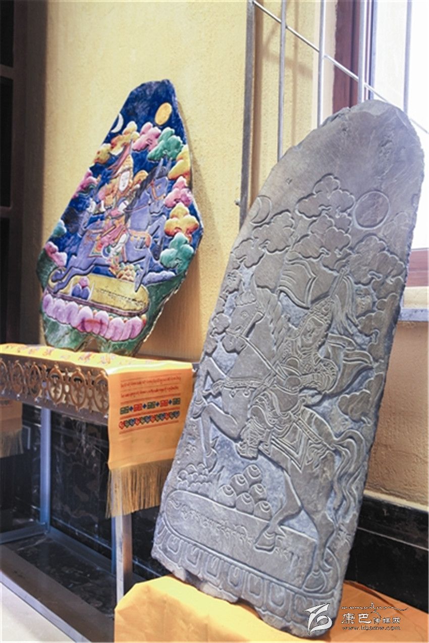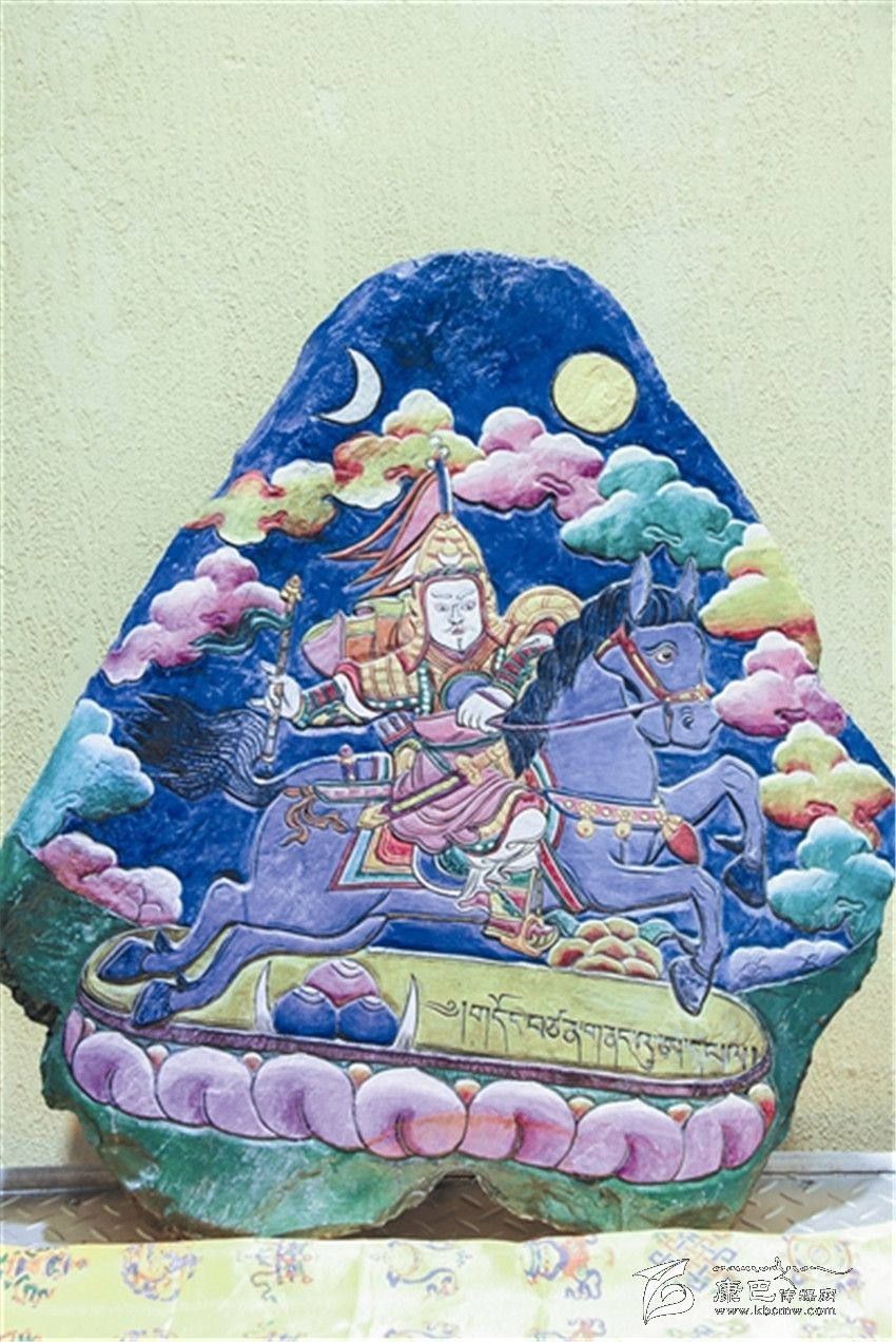 據(jù)了解,格薩爾彩繪石刻是藏族民間美術(shù)中的一門創(chuàng)新藝術(shù),它不僅是格薩爾文化的一種新的傳承方式,也填補(bǔ)了格薩爾文化在藏族石刻中的空白。格薩爾彩繪石刻刀法精細(xì),取材考究,在采用鑿刻、直刻、斜刻刀法的同時(shí),注重磨刻、磨劃技術(shù)效果,使石刻畫構(gòu)圖和諧。在石刻畫上采用了彩繪工藝,這樣既增加了畫面視覺的藝術(shù)感和光澤度,又可以起到保護(hù)作用。