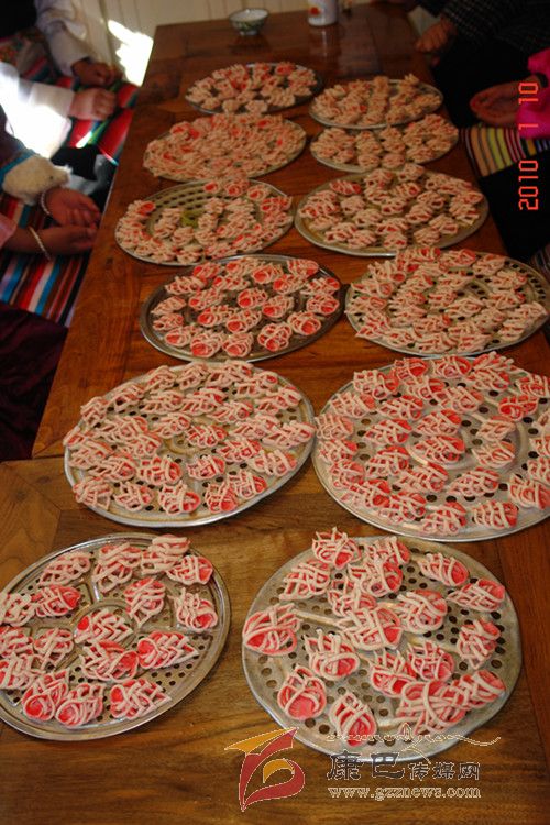 “花茹”是一種用面粉制作的糕點(diǎn),是巴塘人逢年過節(jié)、婚禮慶典等節(jié)慶日不可或缺的美食佳肴,可以這樣說,在節(jié)日期間或宴請賓朋之日,在眾多的糖果糕點(diǎn)中,如缺少了“花茹”,便自然就失去了巴塘風(fēng)味。
