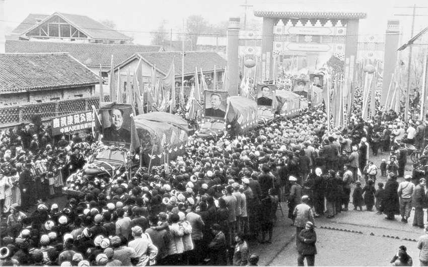 1954年12月25日,3000多名各族群眾在康定隆重集會(huì),慶祝川藏公路(康藏公路)通車(chē)典禮現(xiàn)場(chǎng)。