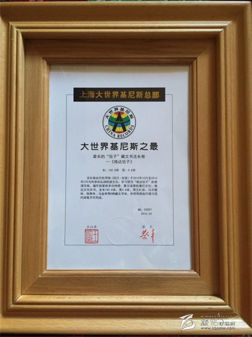 我州藏文書(shū)法家、省級(jí)藏文書(shū)法傳承人、上?;崴辜o(jì)錄創(chuàng)造者巴松鄧珠歷時(shí)三年創(chuàng)作完成了《格達(dá)弦子詞》藏文書(shū)法長(zhǎng)卷。日前,《格達(dá)弦子詞》成功申報(bào)上海大世界基尼斯最長(zhǎng)的“弦子”藏文書(shū)法長(zhǎng)卷。5月6日至12日“圣潔甘孜·走進(jìn)上海”系列展在上海展覽中心西二館亮相。