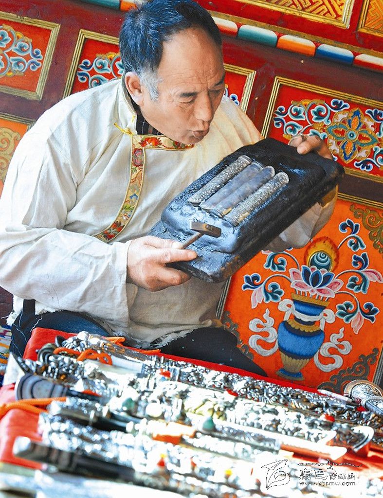 實際上,河坡藏族手工藝的歷史,可以追溯到1300多年前。自從松贊干布時期,藏王屯兵康區(qū),不斷向東南內(nèi)地擴(kuò)張起,這里就開始了刀槍、戈矛、弓箭等兵器的鑄造。河坡工匠利用當(dāng)?shù)罔F礦土法煉鐵,作為鑄造兵器的原材料。附近的熱加鄉(xiāng)阿仁溝,如今還能見到當(dāng)時的煉鐵遺跡。