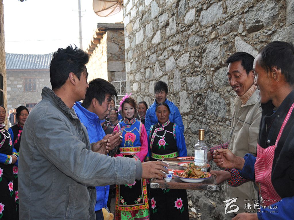 ■貴羌(瓊)人的婚禮一般在深夜舉行,吉時(shí)到,新娘的哥哥或弟弟或親老表(表兄弟)背上新娘,在送親隊(duì)伍的簇?fù)硐掠山佑H人員帶領(lǐng)趕往男家,途中接受對(duì)方擺設(shè)的三道迎門接路酒后,才到男方家門口等待婚拜禮節(jié),拜禮完畢就宵夜(吃夜宵)。第三天是匯親、回門、謝幫辦、還家具、撤盤等?;楹笊谝惶ィ瑧言泻笠啬锛艺{(diào)養(yǎng),直到分娩滿月才帶上嫁妝和孩子回婆家。
