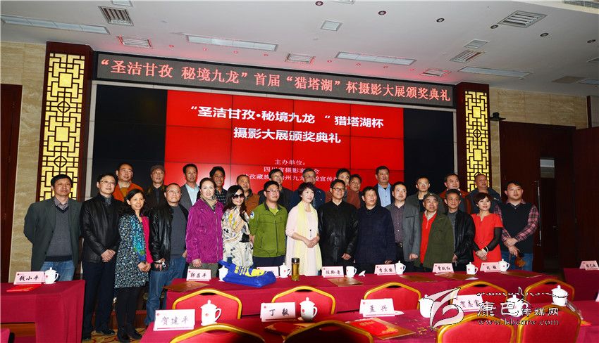 當(dāng)天下午三點(diǎn)半,在成鑫苑酒店三樓大廳,“藏彝走廊秘境九龍”首屆獵塔湖杯攝影展頒獎(jiǎng)儀式隆重開(kāi)始。巨大的電視顯示屏上展示著九龍縣的風(fēng)光和人文美景。頒獎(jiǎng)現(xiàn)場(chǎng)不時(shí)響起一陣陣快門聲。