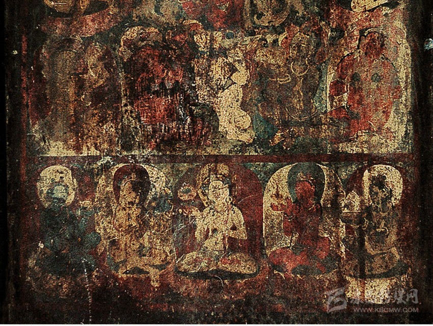西藏佛教是從印度和中原分兩路傳入的,所以前弘期的繪畫(huà)風(fēng)格一是受到印度波羅藝術(shù)的影響;第二,則是文成公主進(jìn)藏時(shí),把中原佛教繪畫(huà)風(fēng)格也帶入了西藏。于是,這一時(shí)期,印度、中原的繪畫(huà)風(fēng)格同時(shí)在青藏高原上交響,也常常在同一面墻壁上并存。如同當(dāng)時(shí)修建的桑耶寺一樣,糅合了印、漢、藏三種審美風(fēng)格。