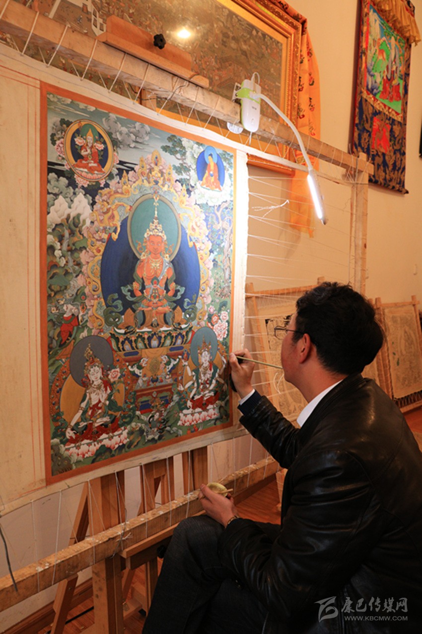 在師傅的教授下,著著從臨摹、勾線定型、著色染色、畫佛像一步步學(xué)起,對畫唐卡近乎癡迷地著著,在師傅的指點(diǎn)下學(xué)得特別認(rèn)真,他嚴(yán)格要求自己,把每幅畫都當(dāng)作品來完成。學(xué)習(xí)唐卡畫多則十余年,少則五六年,也許是著著的刻苦加天賦原因,僅三年時(shí)間便出師開始獨(dú)立作畫,到云南或鄉(xiāng)城周邊地區(qū)以畫壁畫、唐卡為生。