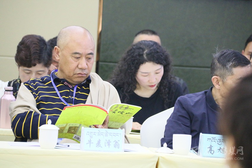 會議室正中的電子屏上,“貢嘎山期刊交流暨2019年藏漢文作家培訓(xùn)會”白色字體赫然入目。室內(nèi)最靠后的桌上,《貢嘎山》200期紀(jì)念專刊、《貢嘎山》第199期等藏漢文讀物有序擺放,吸引了不少“粉絲”當(dāng)場品讀。