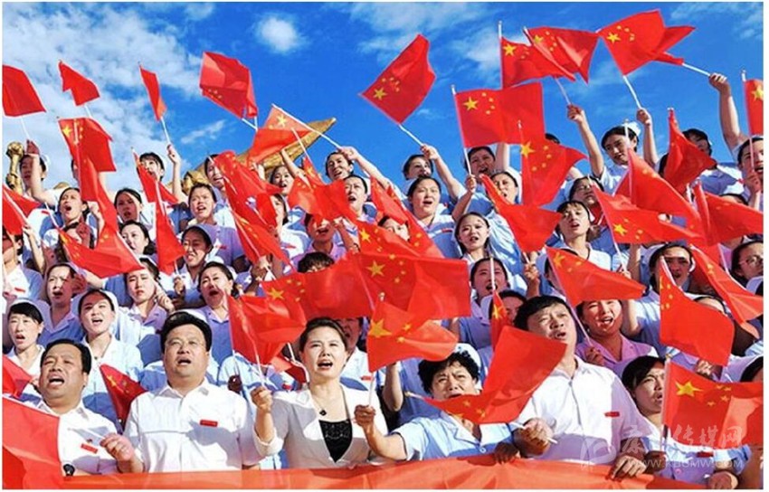 在這金色的十月,讓我們放歌。十月的音符在花開(kāi)鶯飛的南疆歡唱,十月的旋律在白雪皚皚的北國(guó)奏響,十月的節(jié)拍在波濤滾滾的東海跳躍,十月的歌聲在日新月異的西部飄揚(yáng)……讓我們以喊江喊海喊山的嗓音,在霞光萬(wàn)里的早晨,唱響國(guó)歌和飄揚(yáng)的五星紅旗,唱響千百年來(lái)朝朝暮暮澎湃的激情。