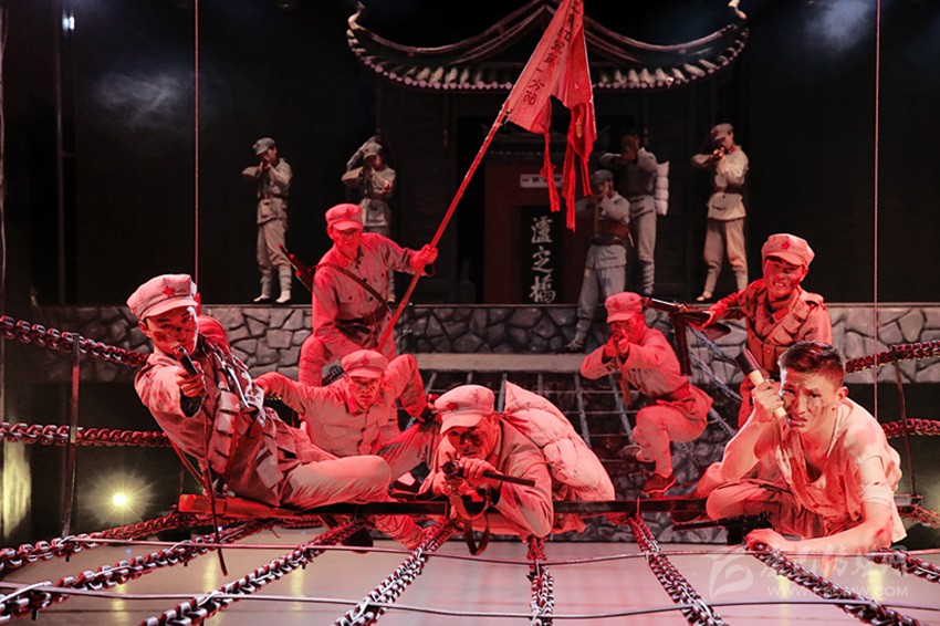 今年5月29日,《飛奪瀘定橋》實景劇正式在瀘定公演。劇目在充分尊重歷史的前提下,通過“夜襲安順場”“強渡大渡河”“神兵天降”“疾行240”“飛奪瀘定橋”5個篇章,融合戲劇、電影、舞蹈、全息投影和機械舞美等當(dāng)代藝術(shù)于一爐,將紅軍戰(zhàn)士在危難時刻的奮勇戰(zhàn)斗展現(xiàn)得淋漓盡致。